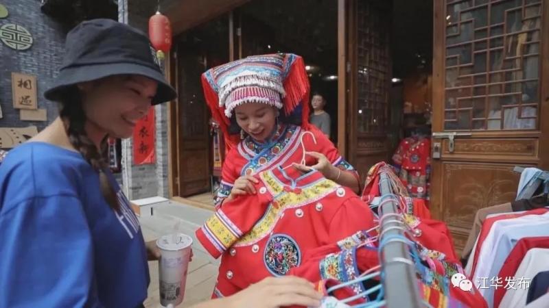 回乡创业的郭丹艳和母亲一起,做起瑶服出租的生意。