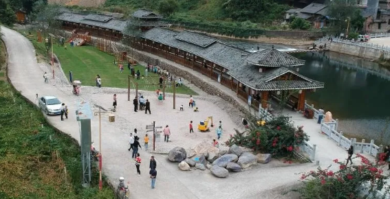 在桐冲口村风雨桥、文化长廊、游乐园等景点,随处可见流连忘返的游人。清澈如镜的麻江河、具有现代元素的民宿吊脚楼,吸引了不少省内外游客在这里拍照打卡、品尝瑶家美食、欣赏瑶族民俗表演。