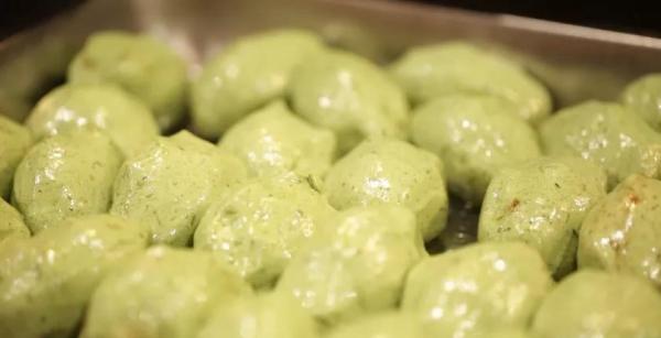 做艾叶粑粑最讲究的就是馅料,瑶家人最常用的就是红糖花生馅,把炒熟的花生用石臼捣碎,放入红糖,混合成内馅;同时,把艾叶与糯米粉混合做成绿色的面团,用手按压出凹槽,将红糖花生馅放进去,包成椭圆状,抹上地道的本地土茶油,用竹叶包裹后,就可上锅蒸制。刚出锅的艾叶粑粑,热气腾腾,艾香满屋,软糯的粑粑,咬上一口,满嘴香甜。