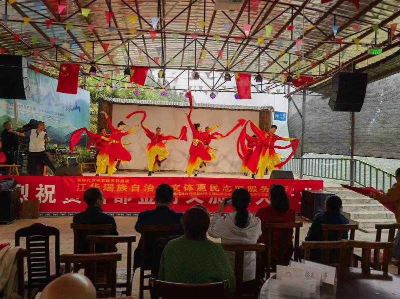江华文旅云网讯(通讯员:周希 )为持续巩固拓展脱贫攻坚成果同乡村振兴有效衔接,推动乡村文化建设、促进农村文化产业发展,满足人民群众的精神文化需求。连日来,江华瑶族自治县民族歌舞剧团的文艺志愿者开展“艺心向党·演艺惠民·送戏下乡”活动,为大石桥乡的父老乡亲献上了一台台精彩纷呈的演出,群众在家门口就享受到了高品质的文化盛宴。