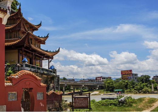 豸山山光美。以 “豸”名山,惟江华独有。据查全国119处重点风景名胜区中,有“豸”字的山名也只有福建连城的冠豸山,以其主峰形似,代獬豸冠帽子而得名,而江华豸山名“豸”。豸为何神,清同治《江华县志》中载:“豸山,在县东一里,山势特起,形肖角端,清朝理瑶丞李邦燮始得之,谓视虾蟆山为胜,作《豸山岩记》。”李邦燮记:“……今年夏,复至县城,欲游阳华岩,循象山而南回视城东之山,恍然如豸,山别为一山,断非虾蟆岩可混为一也。兽中之王,独角者曰角端,又曰獬豸,今观兹山,全形毕具,一角远峙云之际……。”又查角端,《文选 •司马相如〈上林赋〉》中曰:“其兽则麒麟角端。”《宋书 •符瑞志》中载:“角端,日行万八千里,又晓四夷之语,明达方外幽远之事。”《述异记》卷上云:“獬豸者,一角之羊也,性知人有罪。皋陶治狱,其罪疑者,令羊触之。”角端,獬豸按古义理解均为独角兽,我倾向于江华豸山的“豸”以獬豸适。豸山形神,其山景也醉人,山上山下古木翠竹参天,藤蔓遍地,西面上山四百级大理石台阶,逶延几曲,一路鸟语声声,花香扑面。山巅东南,峭壁直下,沱水北流,极目远望,九疑、苍梧叠翠,旧城新楼竞姿,一览无余,似有“一览众山小”之感慨。